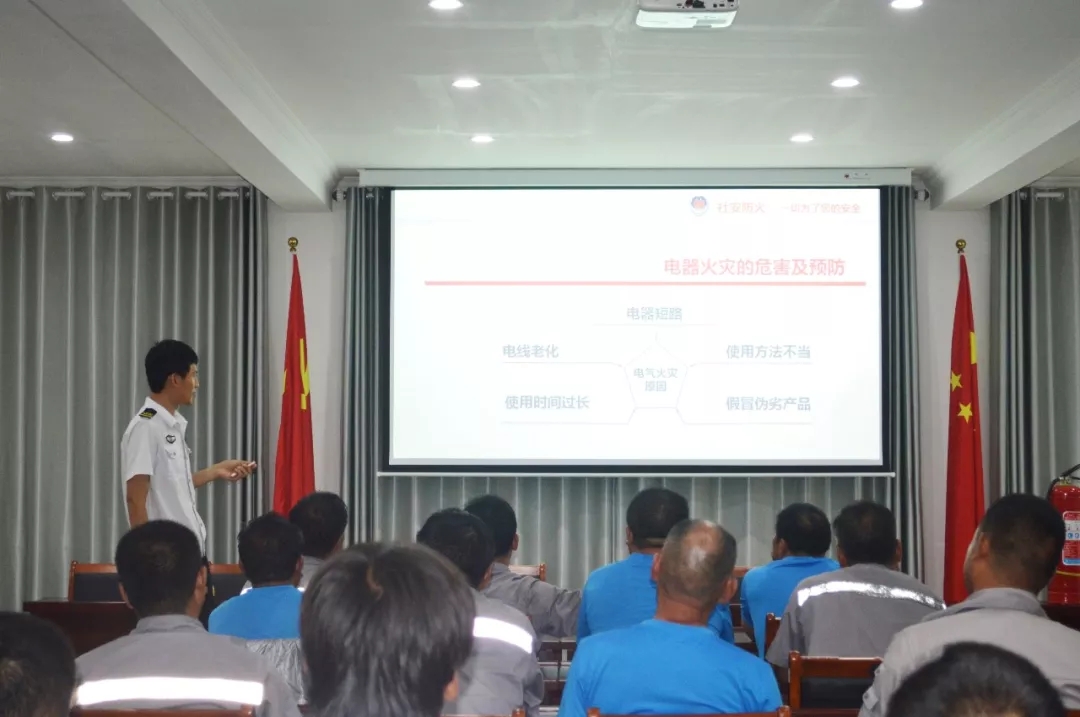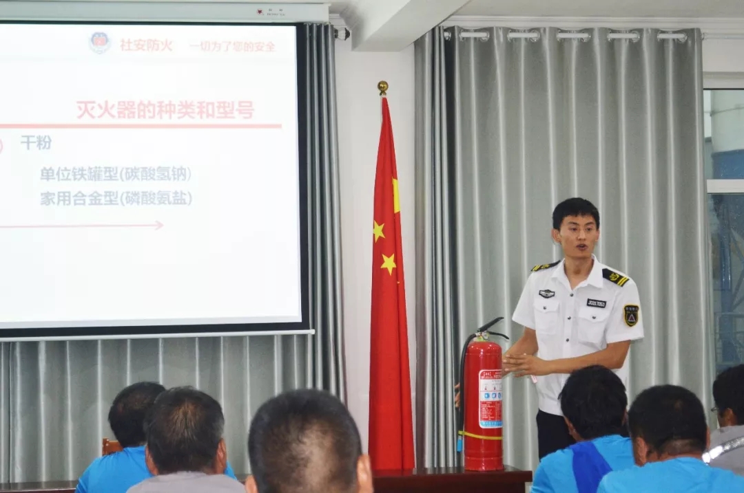 液體、氣體以及電器火災是較為常見的幾種類型,此次培訓中,通過播放消防短片和PPT,同時分析近年來國內重大火災案例及觸目驚心的現場圖片,教官著力為我公司講解了如何消除安全隱患,如何撲救初期火災以及如何正確逃生等幾個主要方面的問題,并重點說明工業(yè)滅火器的型號、種類、保質期以及滅火器“提瞄拔壓”的詳細使用方法,演示突發(fā)火災的應急逃生技巧和電器火災預防、應急的滅火知識。